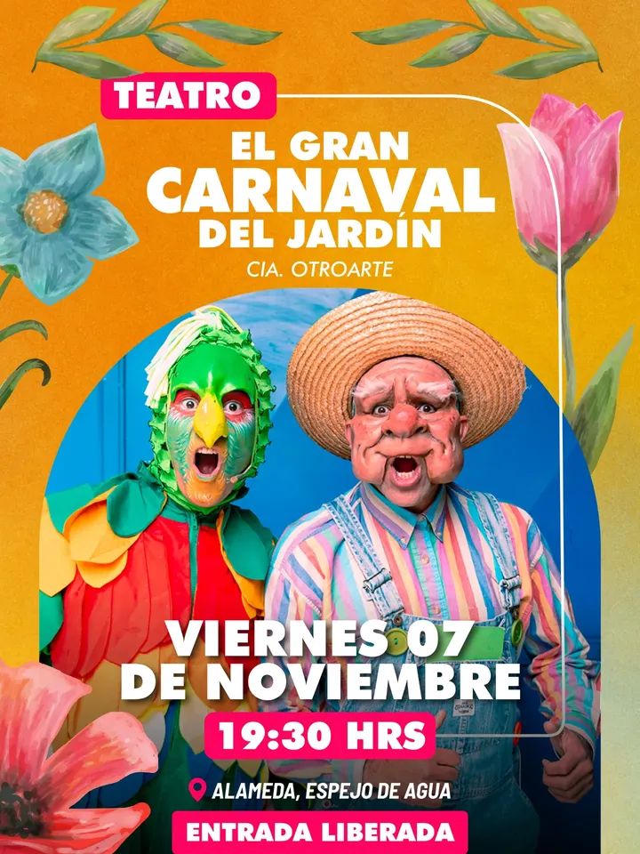 vie07nov19:30vie21:00Teatro "El gran carnaval del jardin" - Ovalle19:30 - 21:00(GMT+00:00) Ovalle