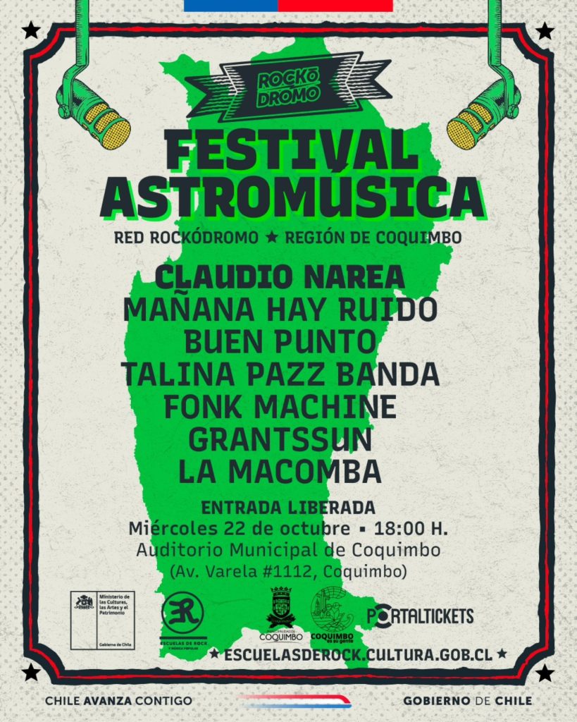 mie22oct18:00mie22:00Festival Astromúsica - Coquimbo18:00 - 22:00(GMT+00:00) Coquimbo
