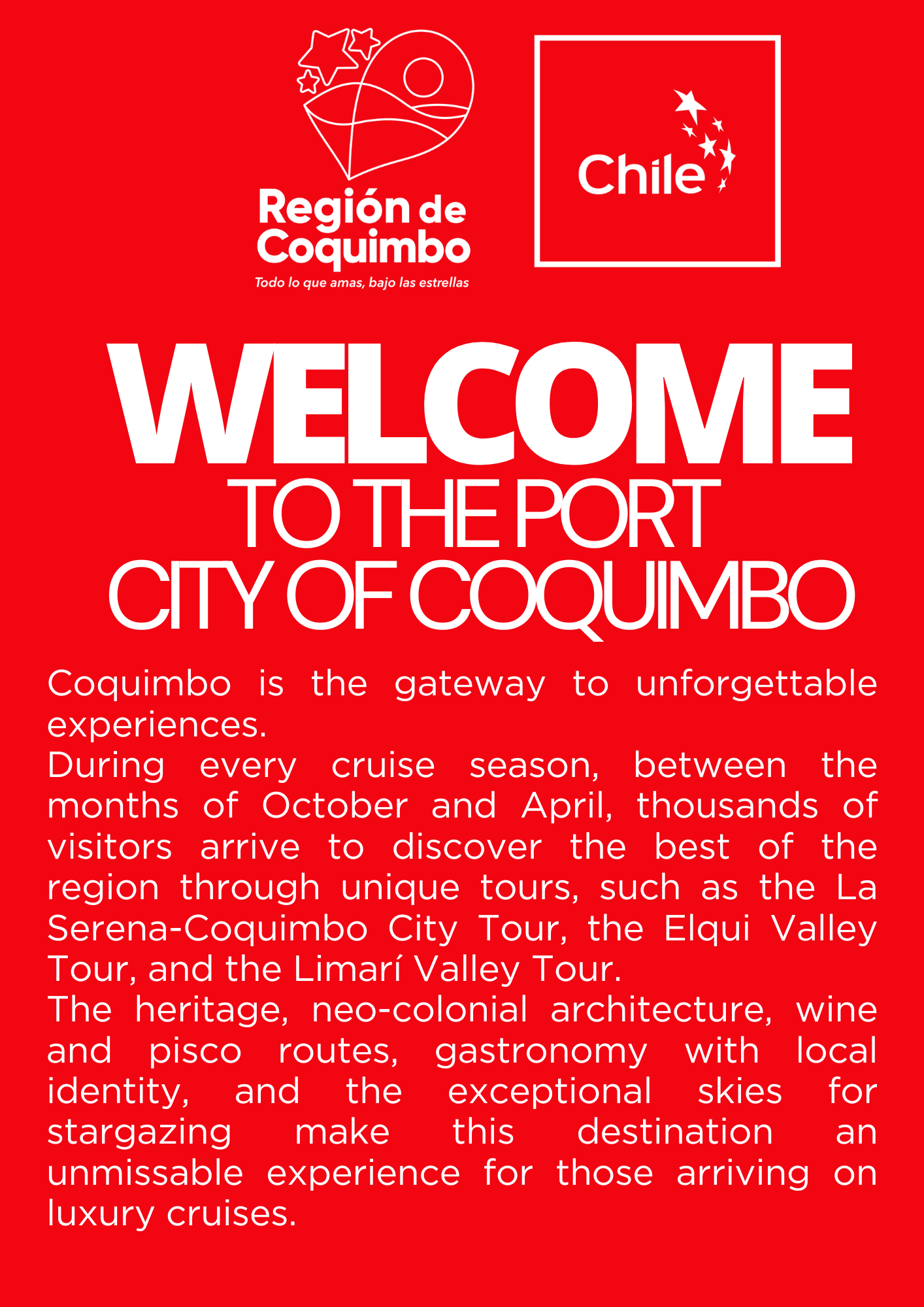 Ven a conocer Región de Coquimbo, una ventana al Universo Todo lo que amas, bajo las estrellas Ir al Registro Regístrate y sé parte de la oferta turística formal Todo lo que amas, bajo las estrellas Ir al Buscador Buscador servicios turísticos región de Coquimbo Todo lo que amas, bajo las estrellas Conoce más Ruta de Gabriela Mistral, Vida Obra y Territorio Todo lo que amas, bajo las estrellas Conoce más Ruta del Pisco,