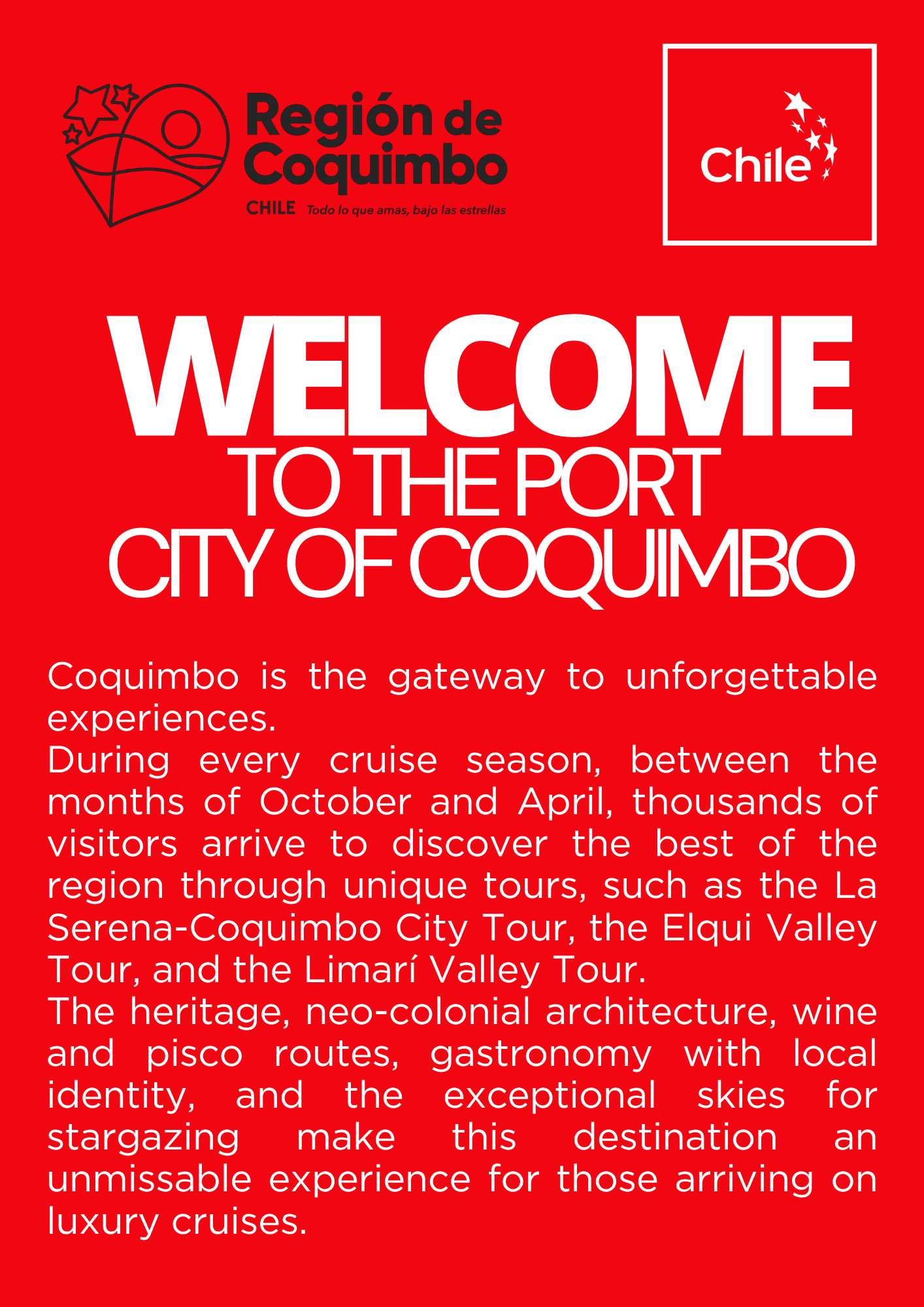 La Región de Coquimbo se extiende entre los paralelos 29º 02' y 32º 16' de latitud sur y desde los 69º 49' longitud oeste hasta el Océano Pacífico. La diversidad de productos turísticos que se encuentran en sus 15 comunas la han convertido en uno de los destinos más demandados y valorados de Chile.