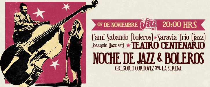 vie07nov20:00vie22:05Noche de Jazz y Boleros - La Serena20:00 - 22:05(GMT+00:00) Agua Grande