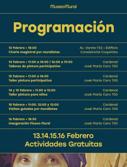 Charlas magistrales, talleres de pintura para niños, jornadas de pintura participativa y visitas guiadas forman parte de la programación que se desarrollará entre el 13 y el 16 de febrero.