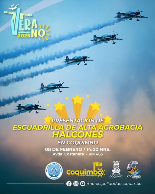 Te invitamos a presenciar de un espectáculo aéreo familiar, lleno de precisión, seguridad y emoción, junto a la Escuadrilla Halcones de la Fuerza Aérea de Chile.