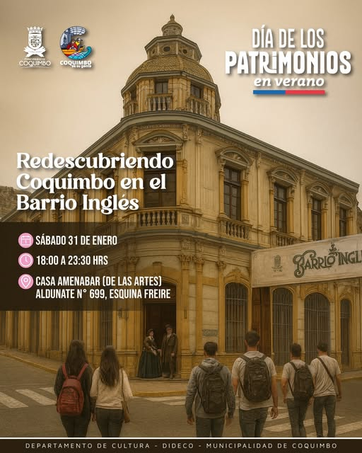 La actividad se desarrollará en pleno Barrio Inglés, donde la Casa Amenábar (Casa de las Artes) abrirá su primer nivel para presentar la exposición “Redescubriendo Coquimbo”, una muestra que reúne imágenes históricas de la colección “Coquimbo 1880–1930, Vida, Tragedia y Cultura en Imágenes”, gracias al préstamo del Museo Histórico Gabriel González Videla y a registros fotográficos inéditos recuperados mediante donaciones particulares.