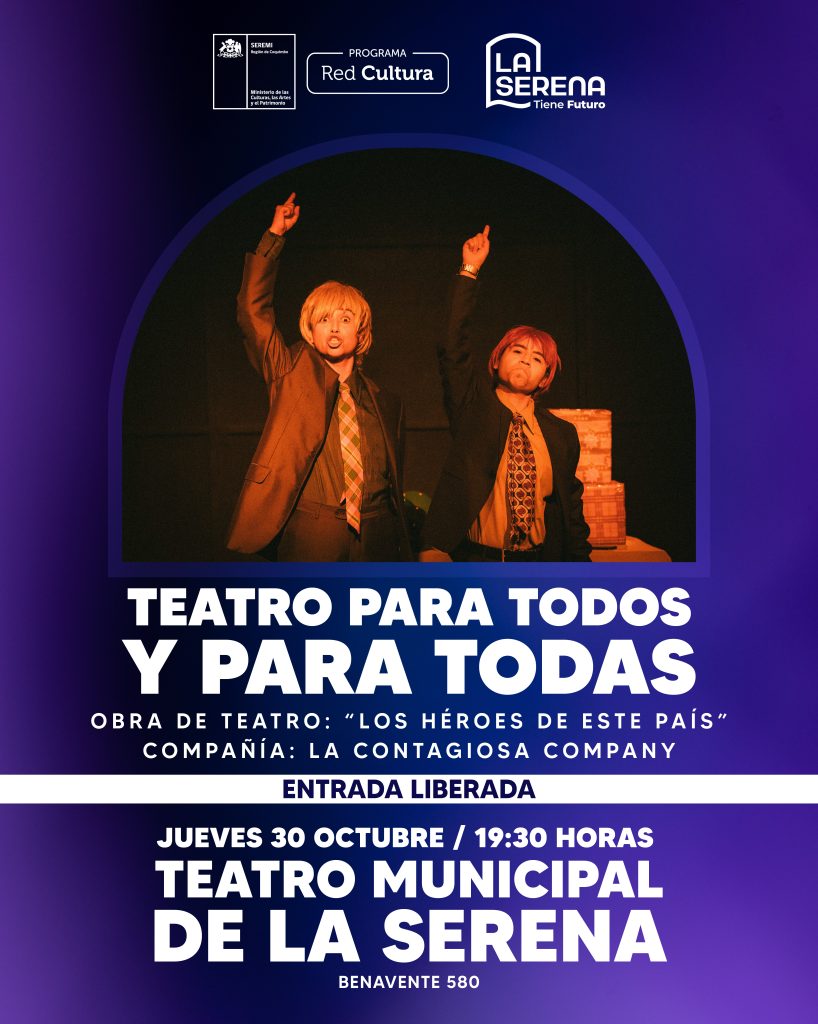 jue30oct19:30jue20:45Teatro para todos y para todas - La Serena19:30 - 20:45(GMT+00:00) La Serena, La Serena, Chile