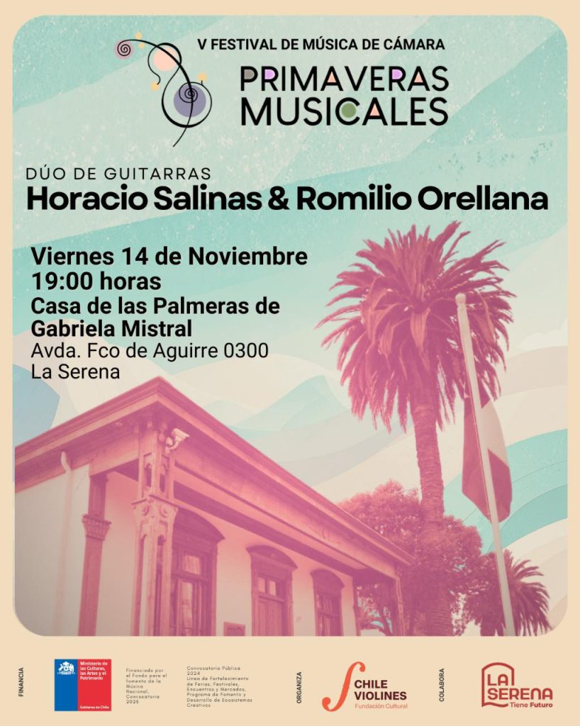 vie14nov19:00vie20:45V Festival de Música de Cámara - La Serena19:00 - 20:45(GMT+00:00) La Serena, La Serena, Chile