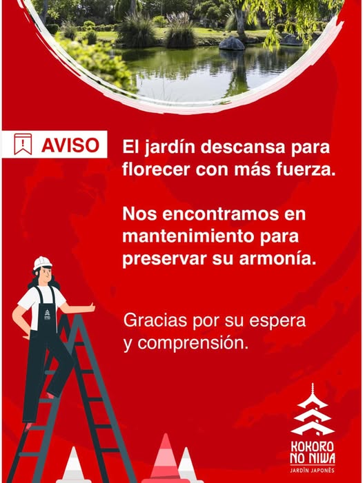 Para nuestros visitantes habituales y estivales, queremos recordarles que nuestro Jardín Japonés Kokoro No Niwa permanecerá cerrado temporalmente por labores de mantenimiento. Estamos trabajando para que este espacio de paz conserve siempre su armonía, por lo que nos dedicamos a cuidar cada detalle para que la naturaleza renazca con más fuerza.